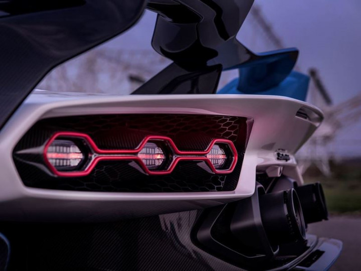 The cabin features carbon-fibre bits all over, 3D printed air vents, and aluminium-finished door handles. You also get a similar combination of white and blue accents all over.